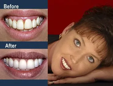 To restore Amy's smile, eight feldspathic porcelain anterior veneers were used. Porcelain veneers crafted by daVinci Dental Studios, West Hills, California. Cosmetic dentistry by Dr. Brad Beasley.