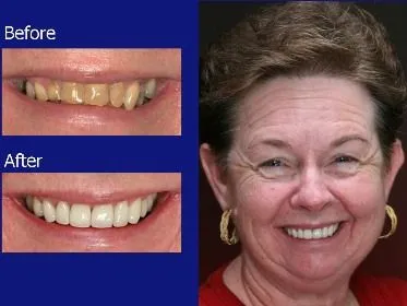 When Donna first came to see Dr. Beasley she had a lot of old dental work that needed to be restored. She had lost all the enamel on her six upper front teeth, and she also had a considerable amount of tooth wear on the two upper and lower front and center teeth, as well as the teeth adjacent to them. Additionally, Donna required either full orthodontic treatment or an entire upper arch of crowns to correct her bite. Donna opted to have her upper arch restored. When the upper arch restoration work was finished, she was so pleased with the outcome that she asked Dr. Beasley to restore her lower arch with porcelain veneers.